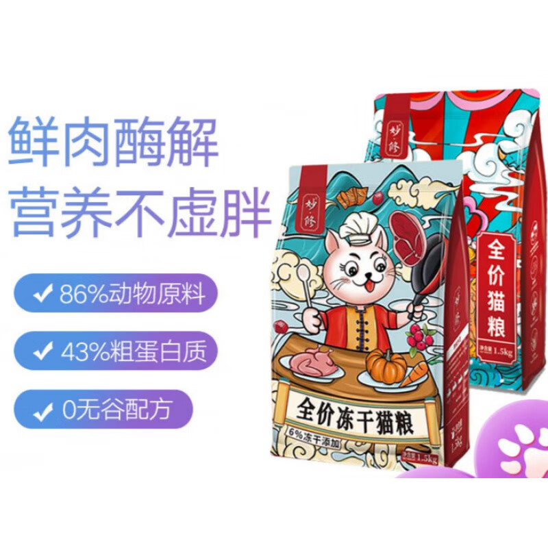 食极妙修猫粮成猫幼猫无谷天然美英短蓝猫布偶橘猫干粮全阶段通用冻干 无谷猫粮1袋(1.5KG)4个罐头 1.5kg