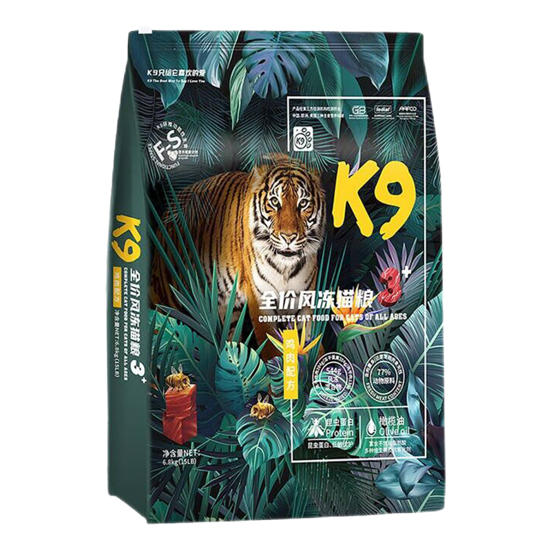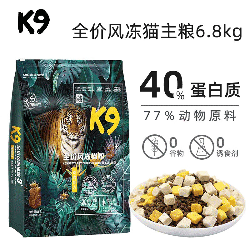 K9猫粮昆虫蛋白全价风冻干三拼猫粮 鸡鱼无谷成幼猫主粮宠物猫食品 【昆虫蛋白】冻干鸡肉6.8kg