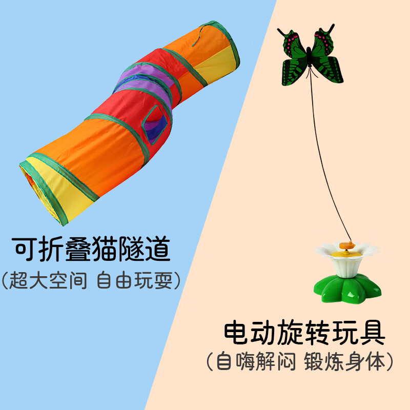 大猫日记电动旋转猫玩具自动逗猫棒蝴蝶解闷猫咪小猫消耗体力用品 可折叠猫隧道玩具 旋转小蝴蝶玩具(配电池)