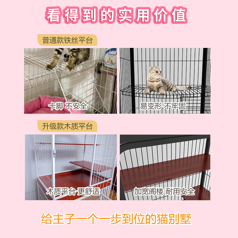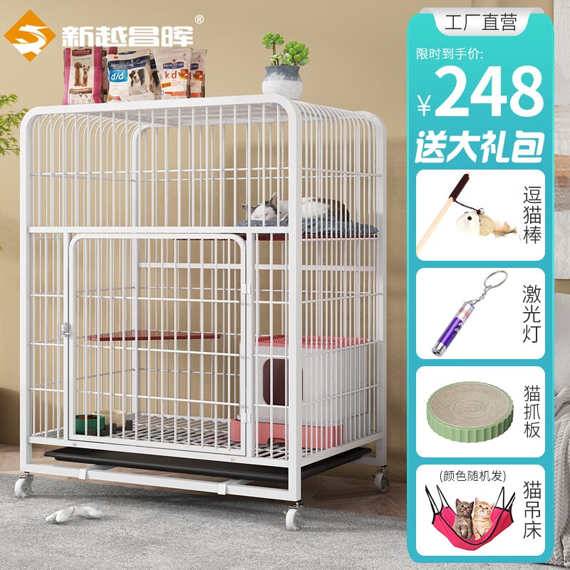 新越昌晖猫笼子 大号方管猫别墅两层猫柜 宠物猫咪房子猫窝猫屋 幼猫通用猫舍78*55*100cm 白色XY-ML03B