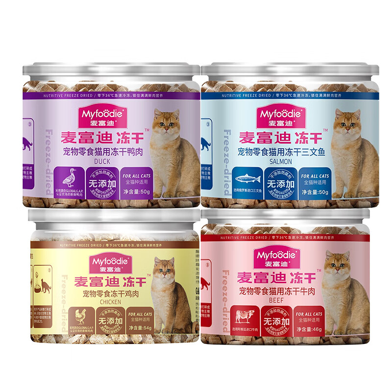 麦富迪(Myfoodie)冻干猫零食麦富迪生骨肉鸡肉干鸭肉牛肉营养猫咪零食湿粮包猫罐头 【4罐囤货装】冻干三文鱼50g 0罐以标注数量为准