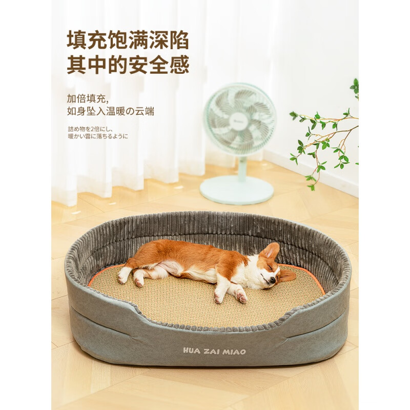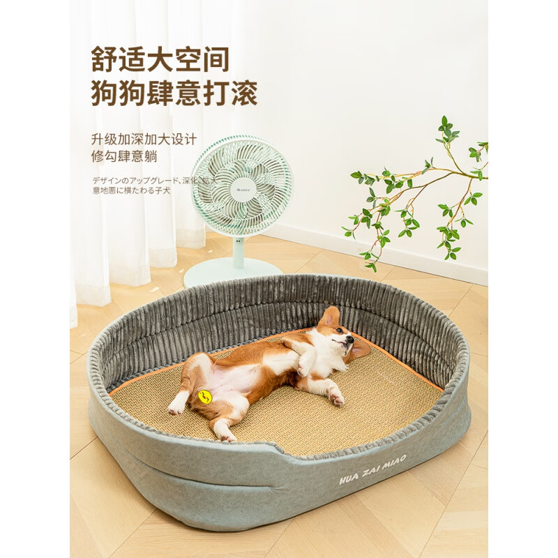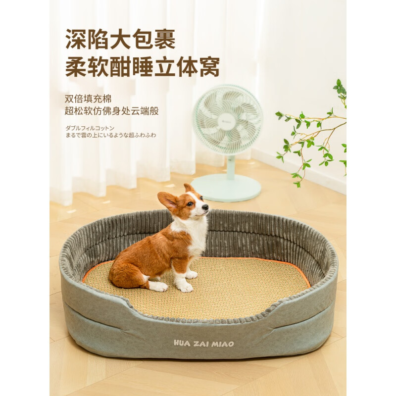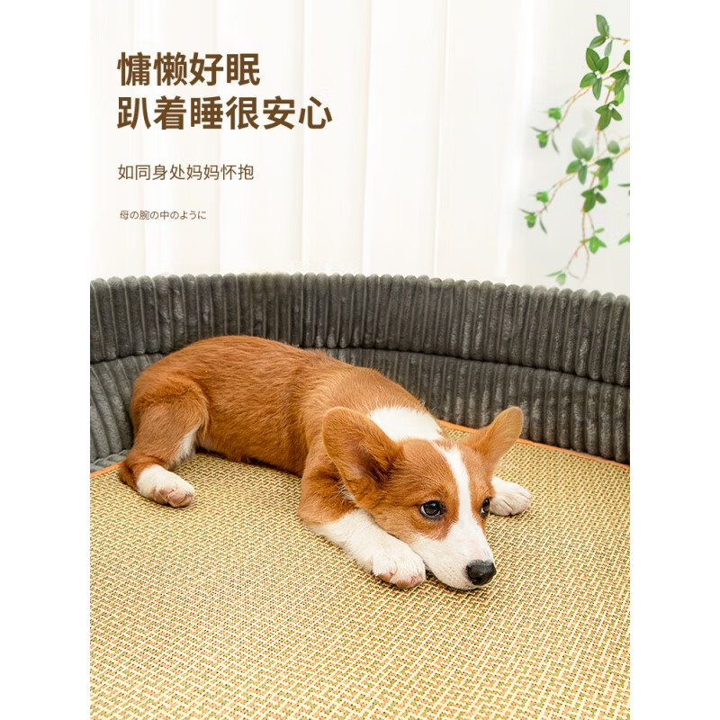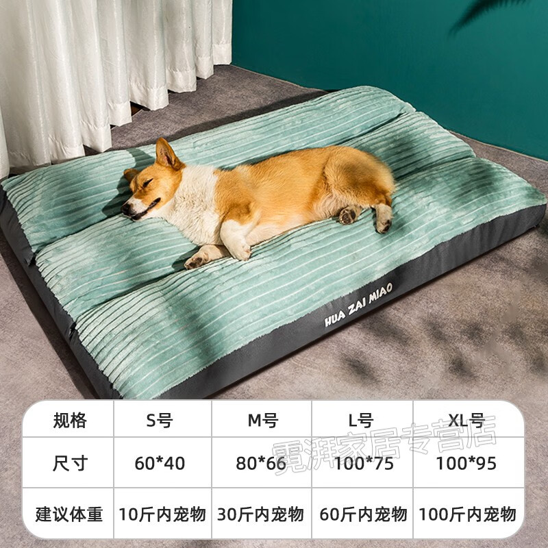 疯狂的主人狗窝四季通用夏季宠物窝小型中型大型犬冬天保暖猫窝垫狗狗用品床 割条舒睡狗垫子 绿色 大型【建议体型50斤内】