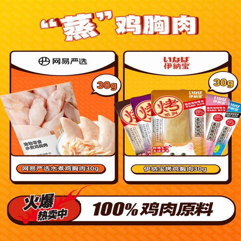 网易严选鸡胸肉水煮猫咪零食鸡肉条猫湿粮冻干罐头 【网易尝鲜款10支】‘“蒸”鸡 30g/支