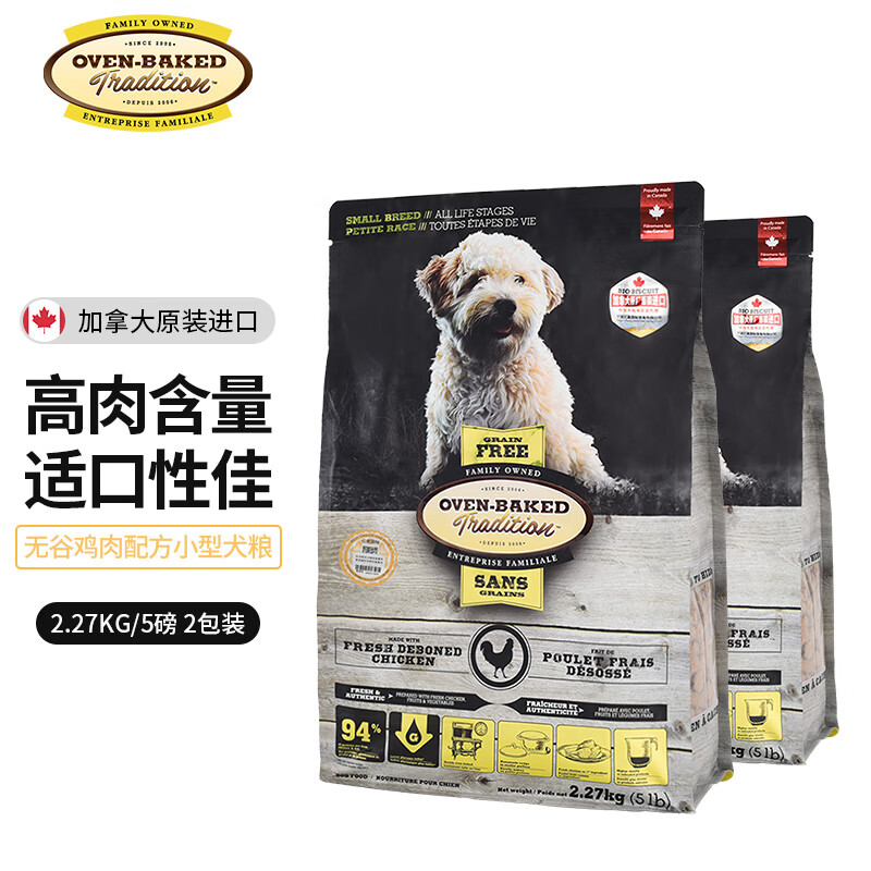 欧恩焙加拿大进口低温烘焙全周期鸡肉小型犬粮 2包5磅/4.54kg