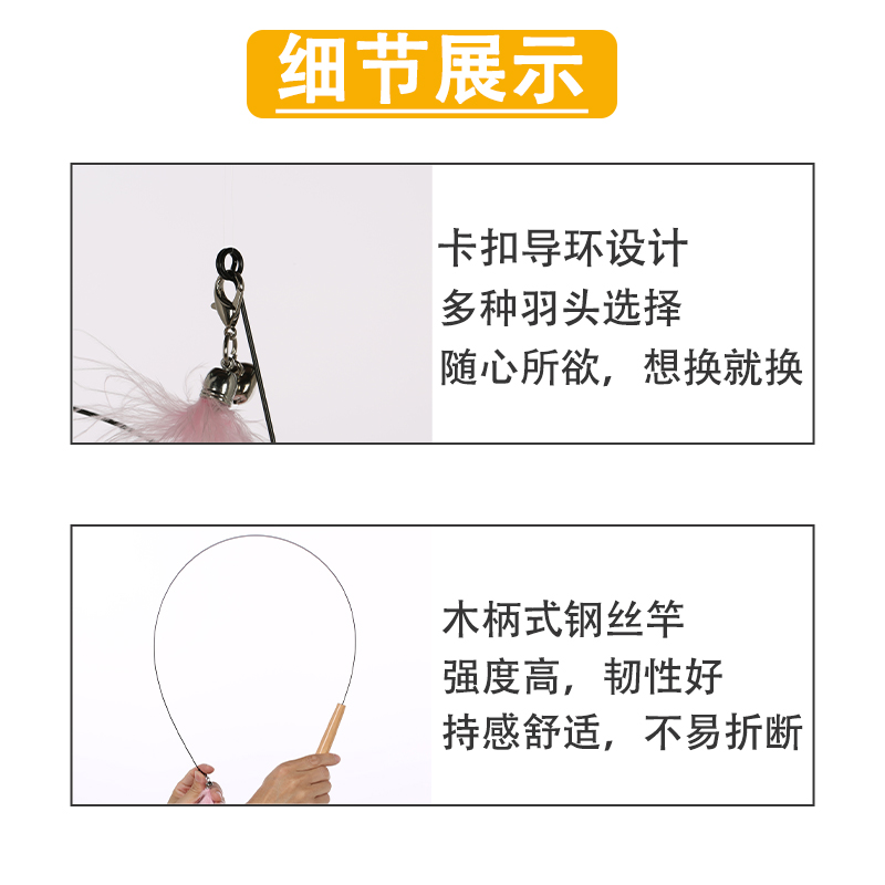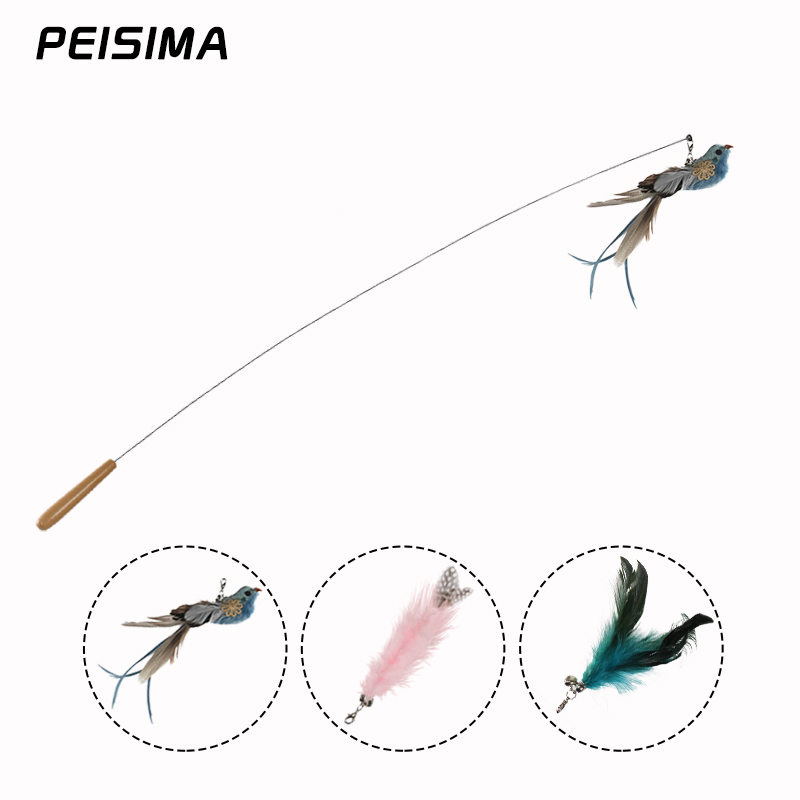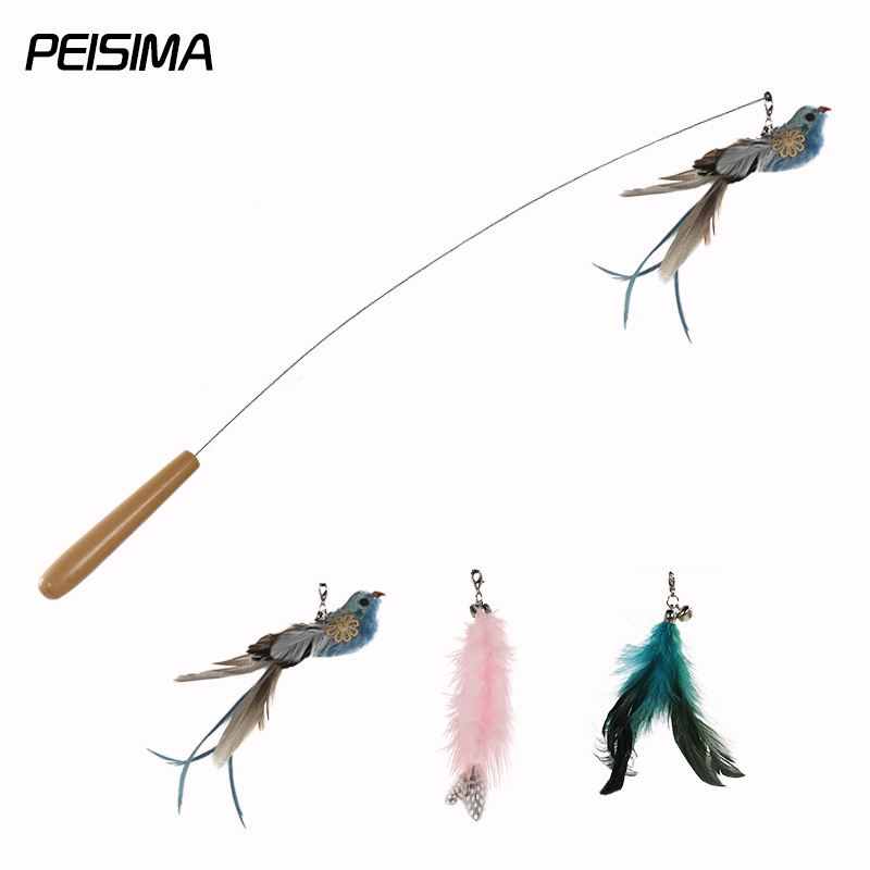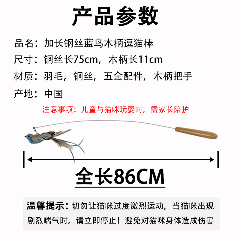 PEISIMA猫玩具套装长杆钢丝木柄逗猫棒逗猫耐咬猫用品替换羽头逗猫棒长86cm幼猫成猫逗猫玩具