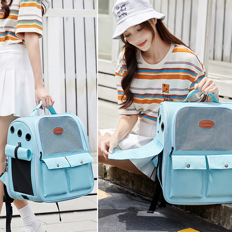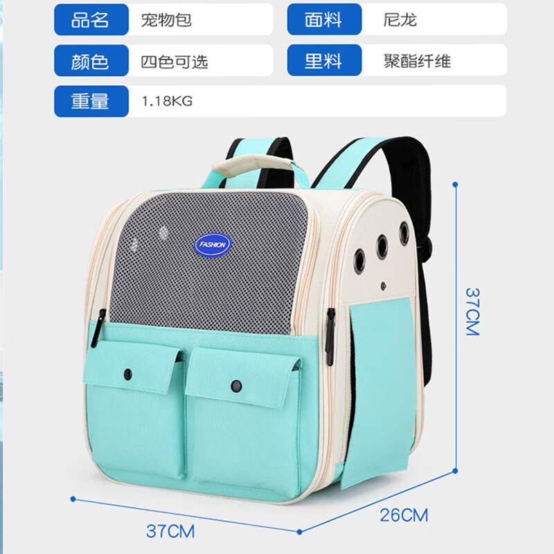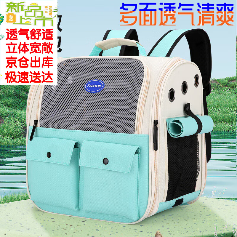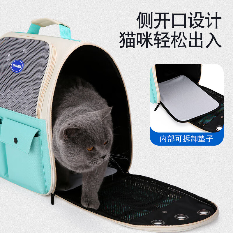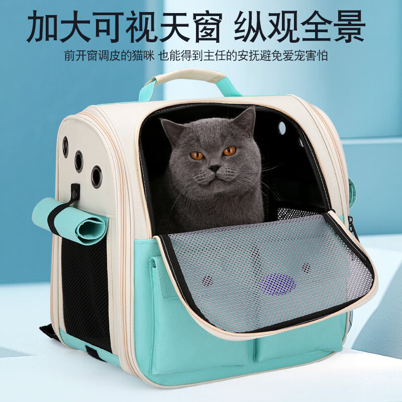 贝尼豆猫包外出大号猫咪背包双肩书包便携手提可折叠猫袋宠物狗狗出行包 浅绿色(16斤内猫12斤内狗)