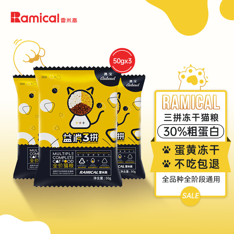 雷米高(RAMICAL)三拼冻干猫粮宠物主粮5%冻干幼猫成猫全价猫粮150g