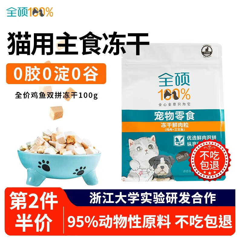 全硕(Quanshuo)冻干鸡肉粒全阶段猫零食 幼猫成年猫咪增肥发腮 营养湿粮补钙鸡肉 鸡肉冻干50g/袋 8袋
