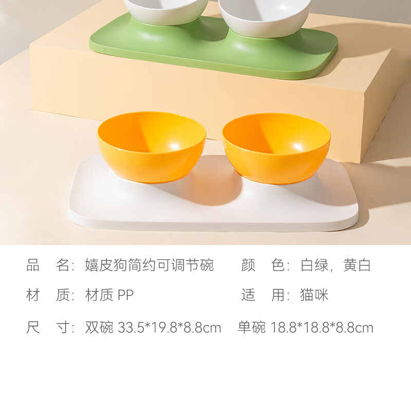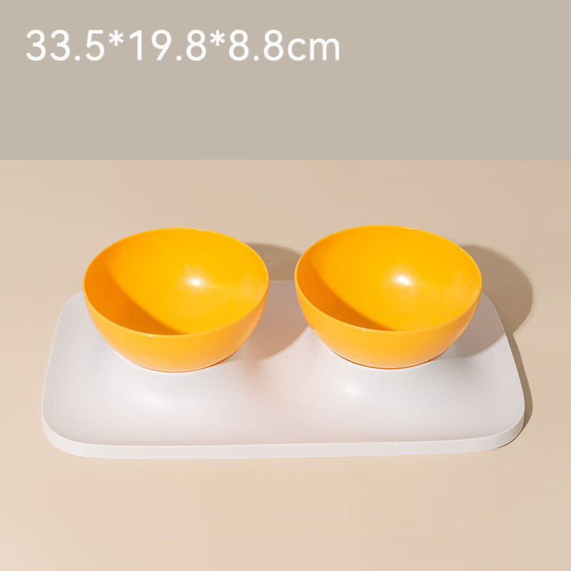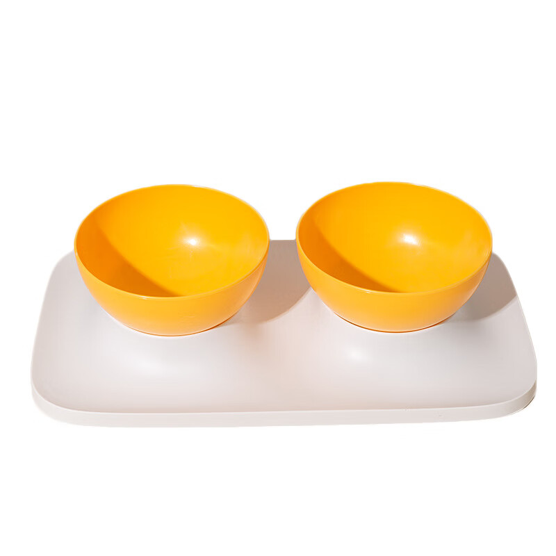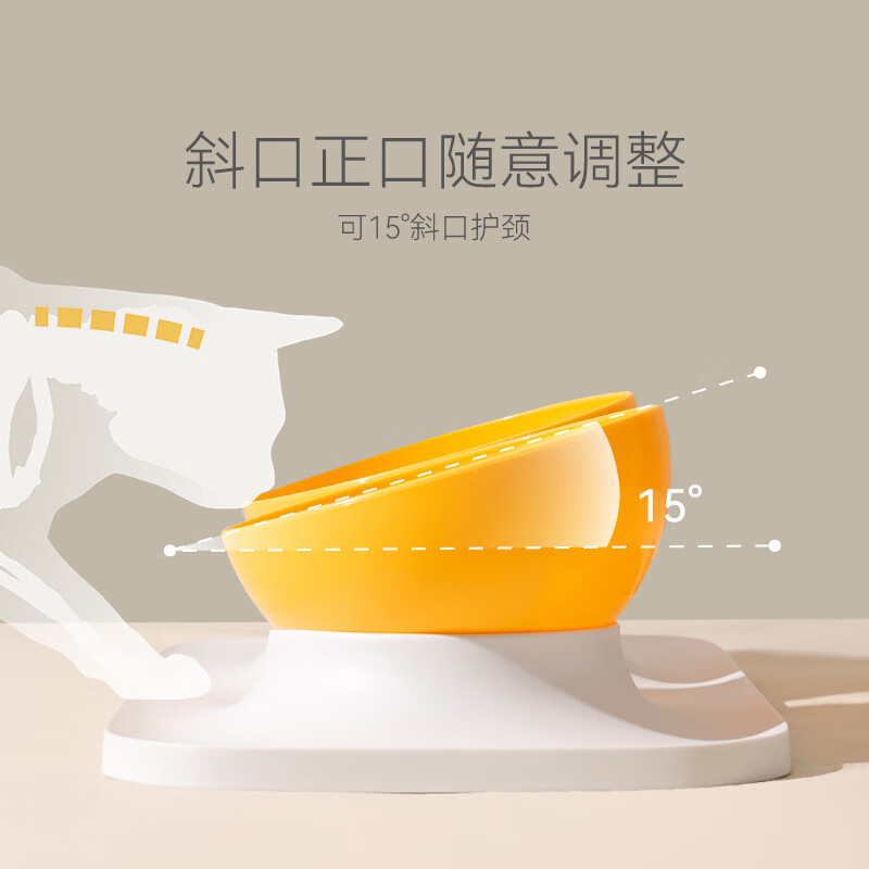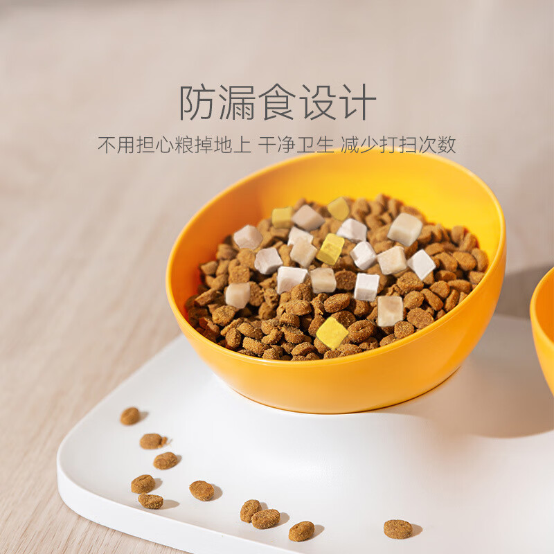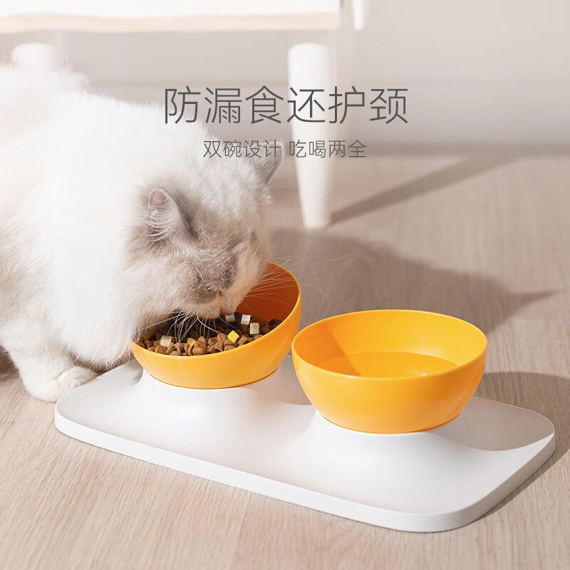 喵乎汪也猫碗猫食盆双碗猫咪水碗饭碗斜口狗狗防打翻成猫幼猫护颈宠物食具 白底黄碗单碗款