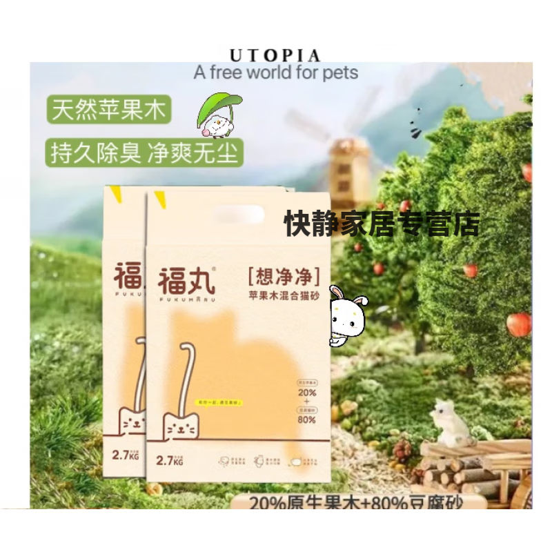 福丸苹果木混合猫砂持久除臭无尘豆腐猫砂结团不粘底植物猫砂 绿茶豆腐猫砂*1包