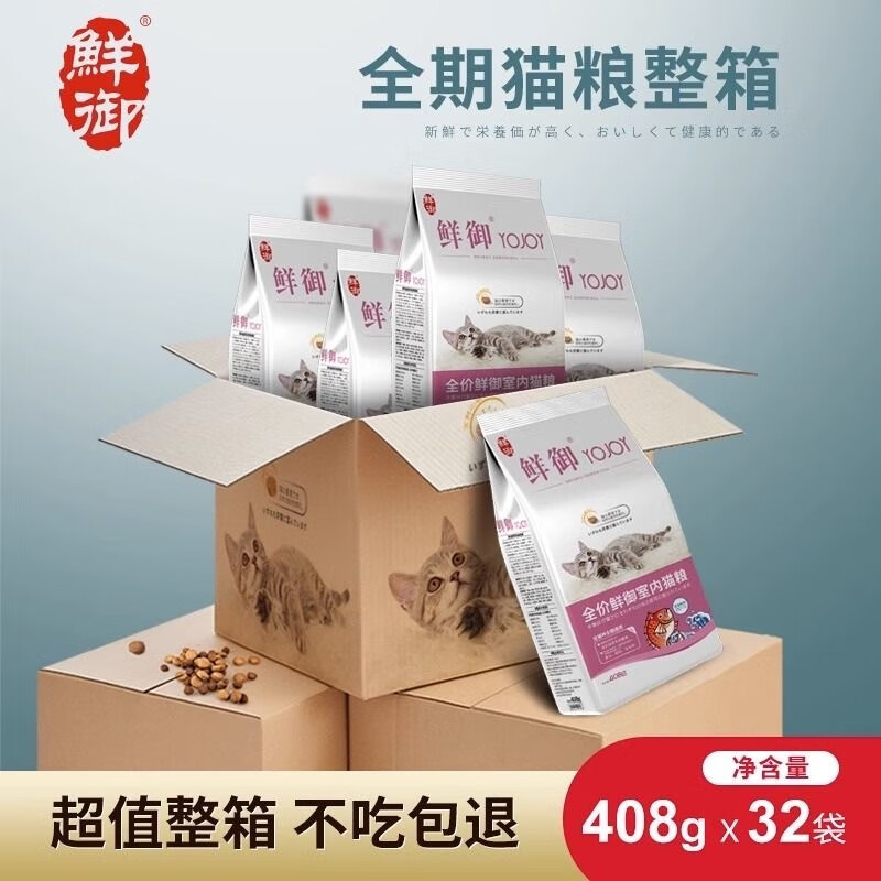 鲜御室内猫粮通用 低盐低镁猫粮幼猫成猫猫粮408g*6包装 蓝猫小包猫粮 整箱装(408g*32包)