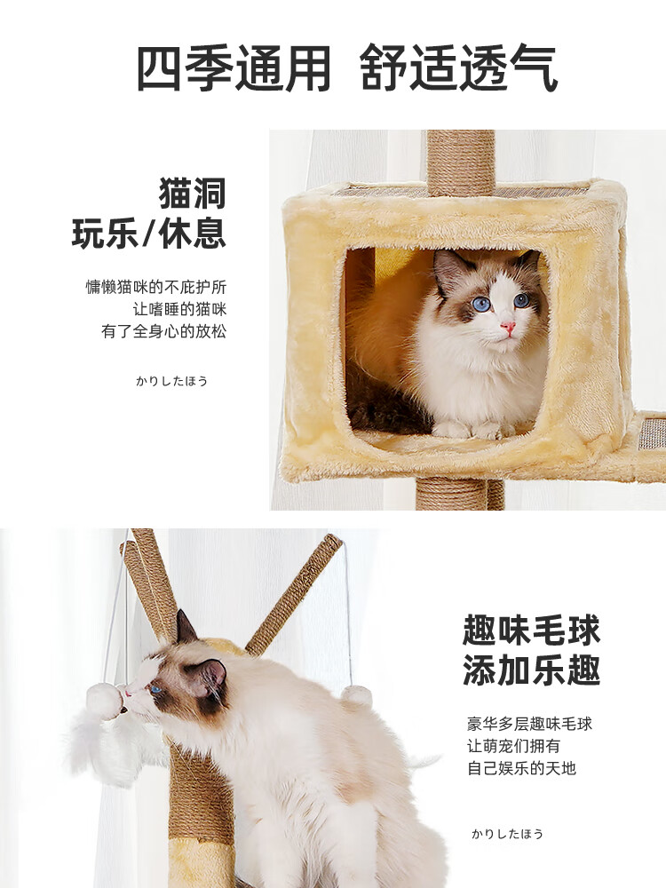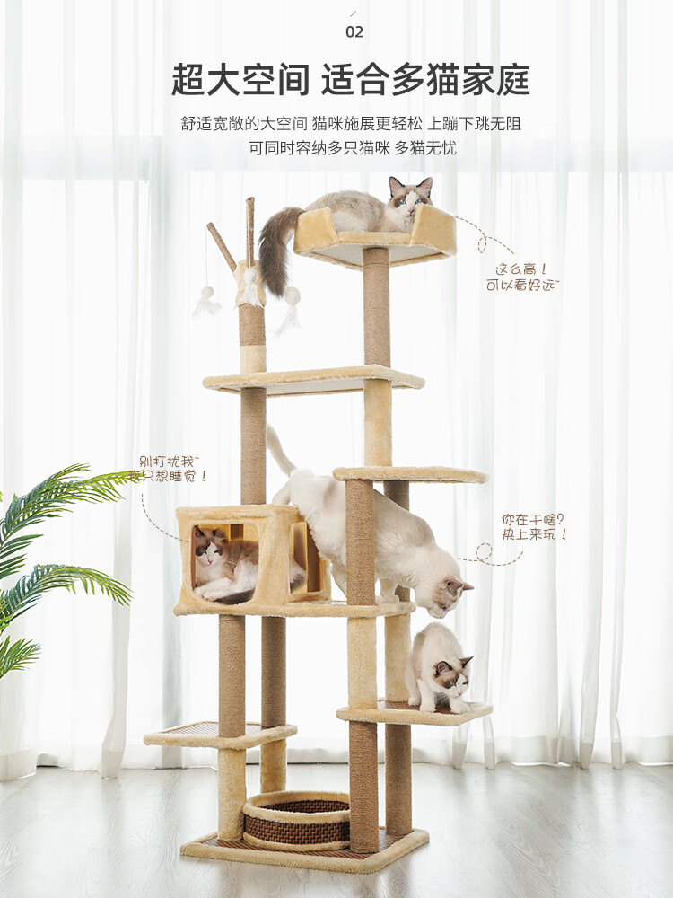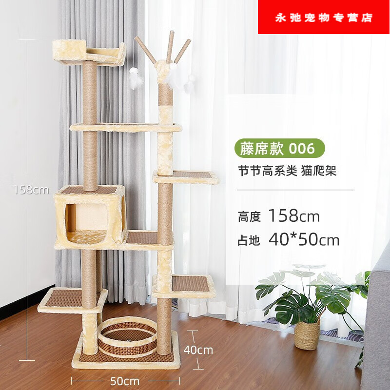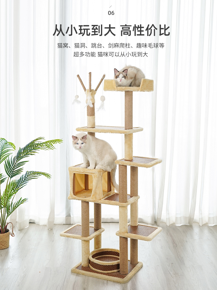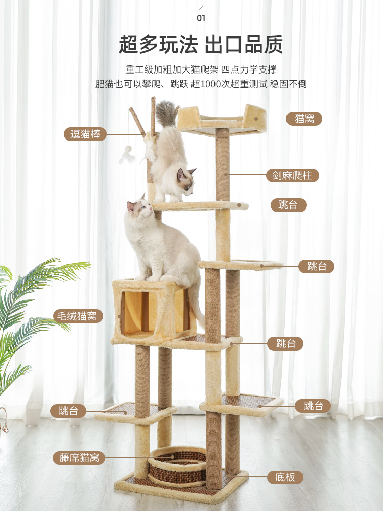 猫爬架猫窝猫树一体猫抓柱子剑麻猫抓板猫咪玩具大型实木猫架用品 节节高豪华藤席款八层款带3个窝