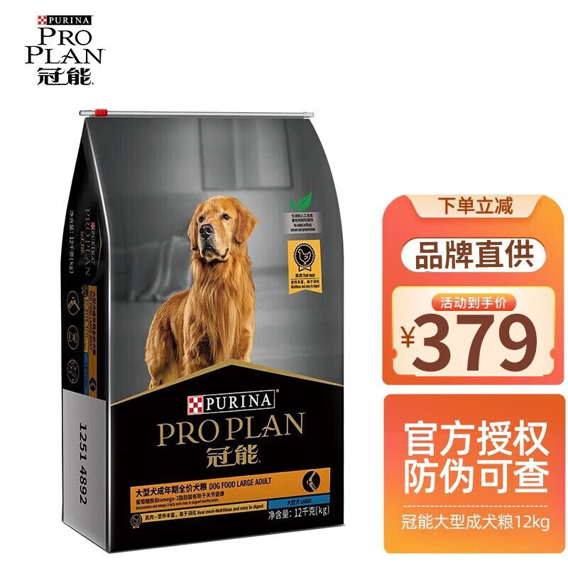 冠能(PRO PLAN)宠物成犬狗粮 大型犬12kg 高消化吸收率配方 12kg