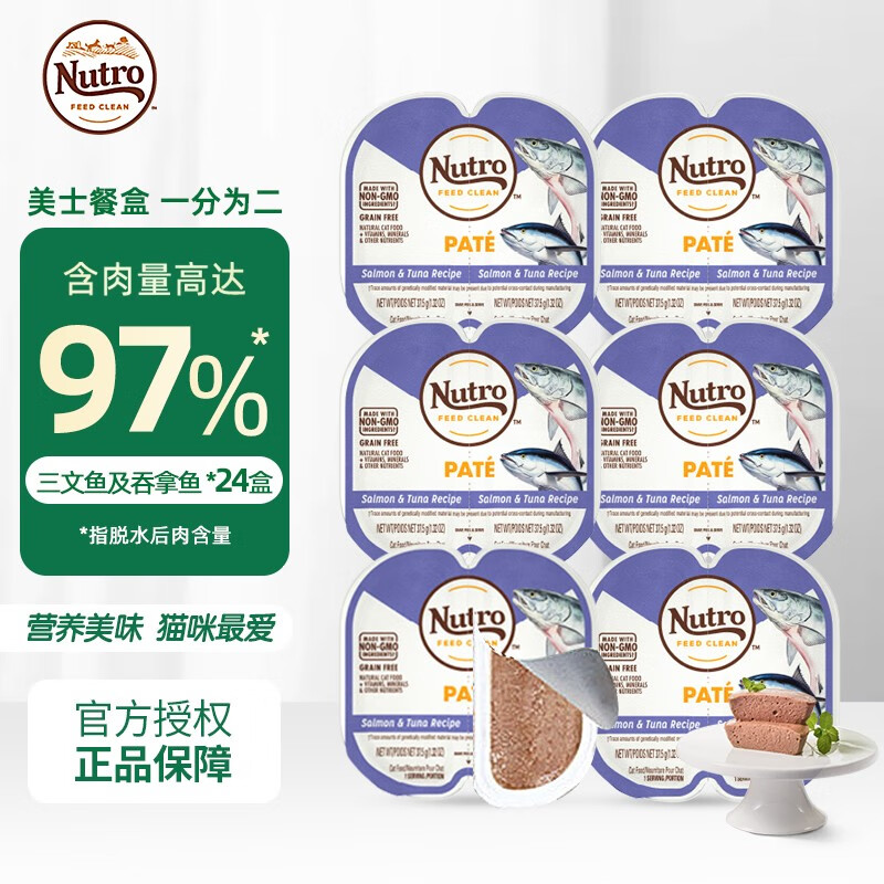 美士餐盒一分为二餐盒猫零食天然无谷猫罐头主食餐盒 三文鱼及吞拿鱼*24盒