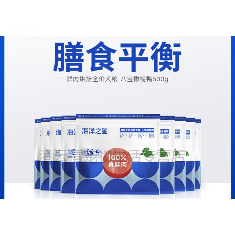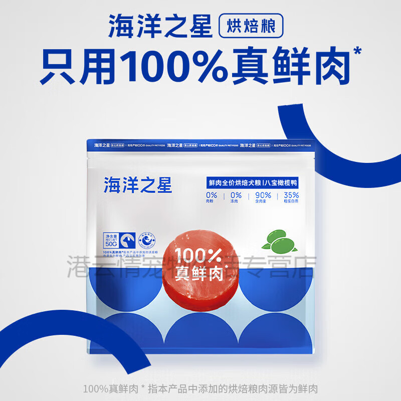 海洋之星低温烘焙狗粮橄榄鸭鲜肉成犬幼犬粮增肥降火无泪痕试吃装 八宝橄榄鸭配方 500g (50gX10袋)