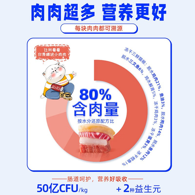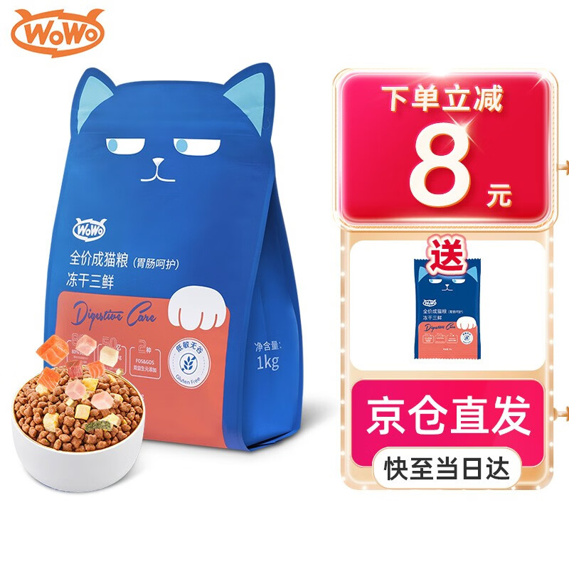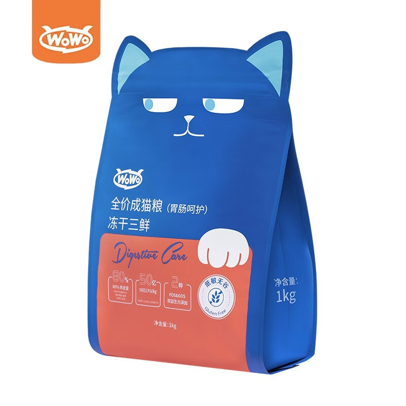 喔喔WoWo猫粮成猫 冻干三鲜无谷全价猫干粮布偶英短通用 冻干三鲜 成猫粮(1kg)