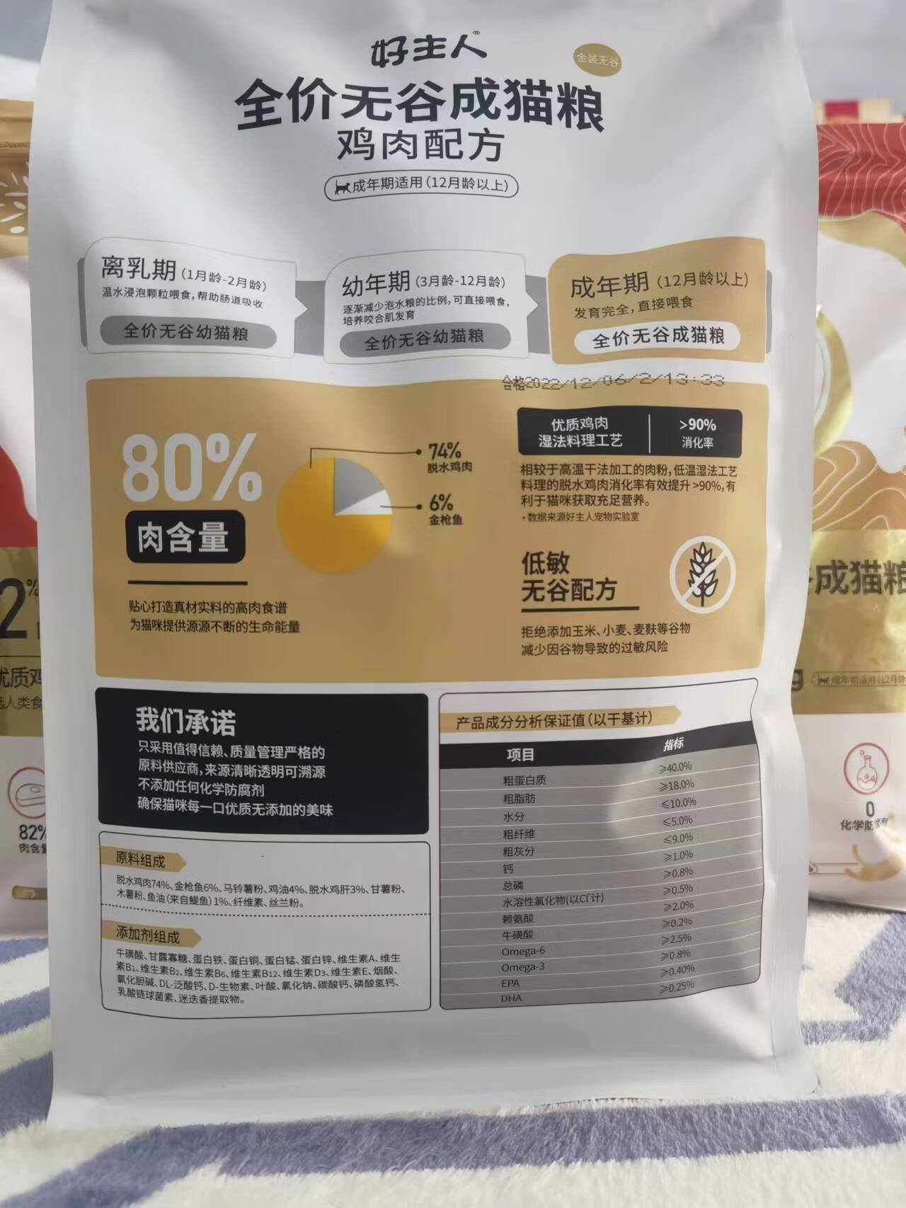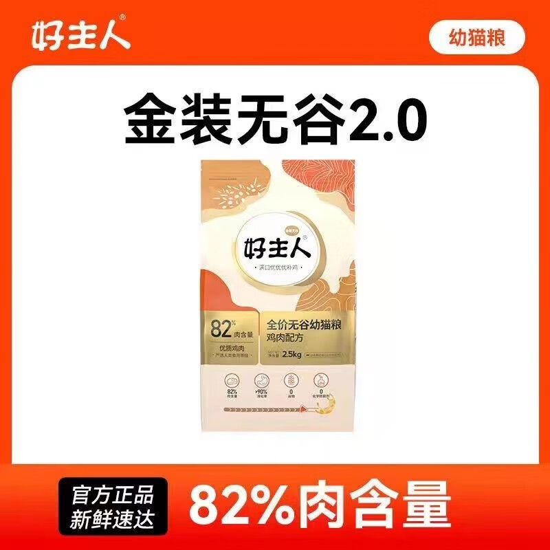 好主人金装成猫无谷全价鸡胸冻干双拼猫粮40%高蛋白80%含肉量5斤 金装幼猫1袋 2.5kg 送试吃(成猫)