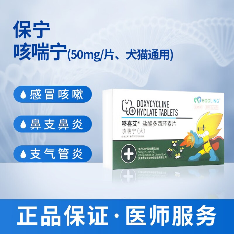 奴星球 保灵咳喘宁盐酸多西环素片猫鼻支治疗药猫咪狗狗鼻炎感冒咳嗽抗孢疹杯状病毒药10mg/50mg 50mg/片 24片/盒