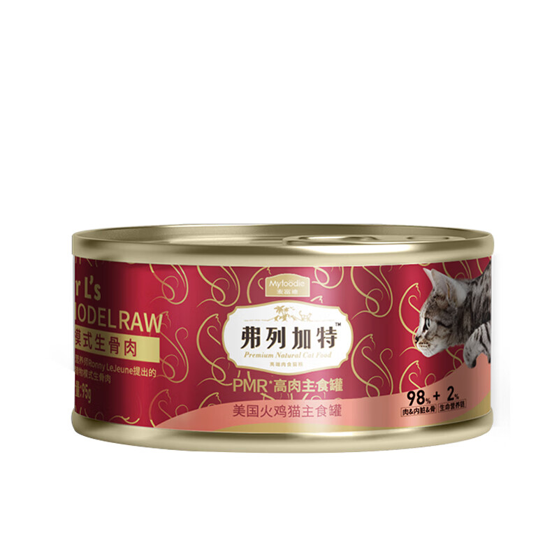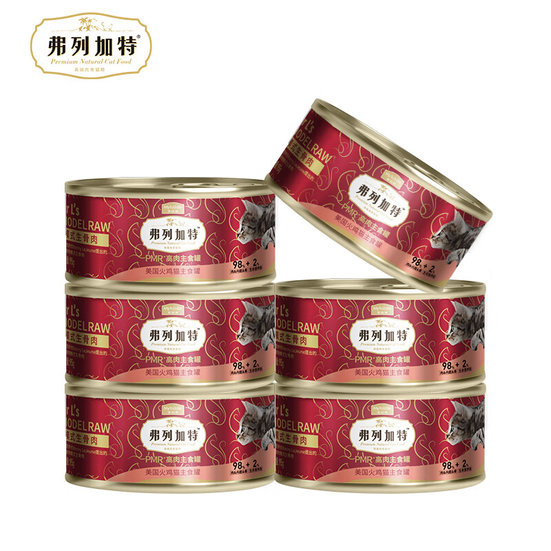 弗列加特主食猫罐头 生骨肉罐高蛋白成猫幼猫通用型猫拌猫饭湿粮 散养火鸡肉95g*6罐