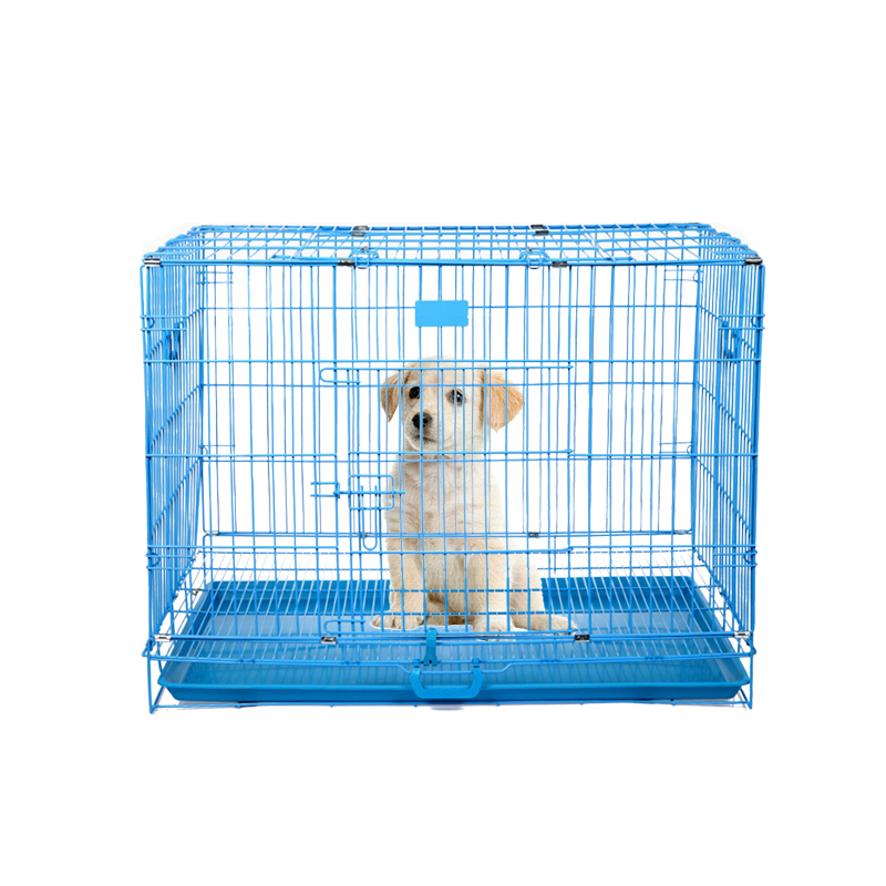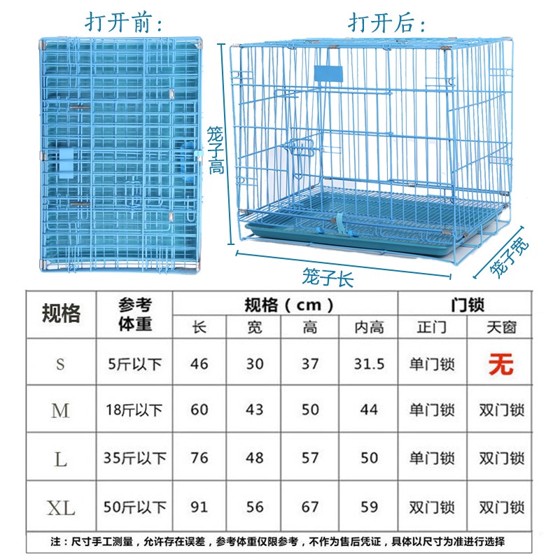 【升级加粗加固】北北宠物狗笼子泰迪金毛狗小中型犬猫笼兔笼子折叠便携式带厕所托盘加粗 S蓝色 (长宽高 46*30*37cm)