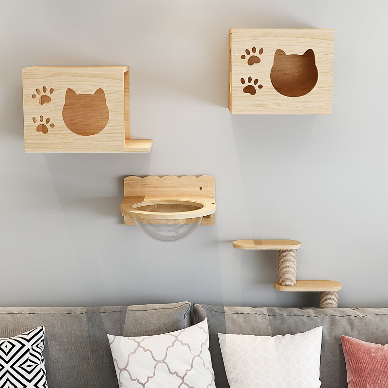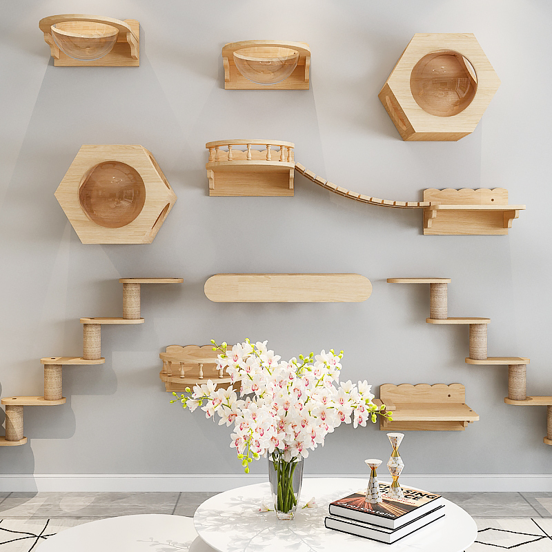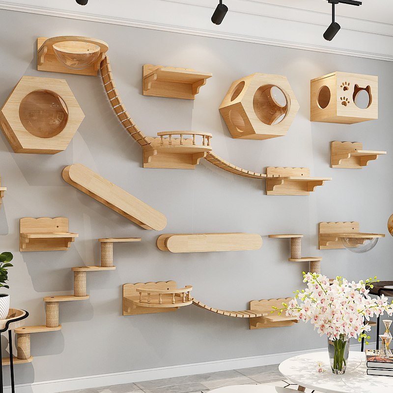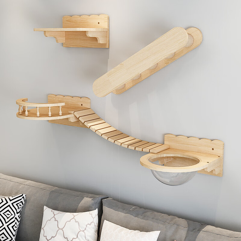 【实木小户型】猫爬架壁挂式实木猫窝树猫墙壁式跳台抓柱板木质墙上猫架 【多猫游乐款】套4 【送货到家 包安装】