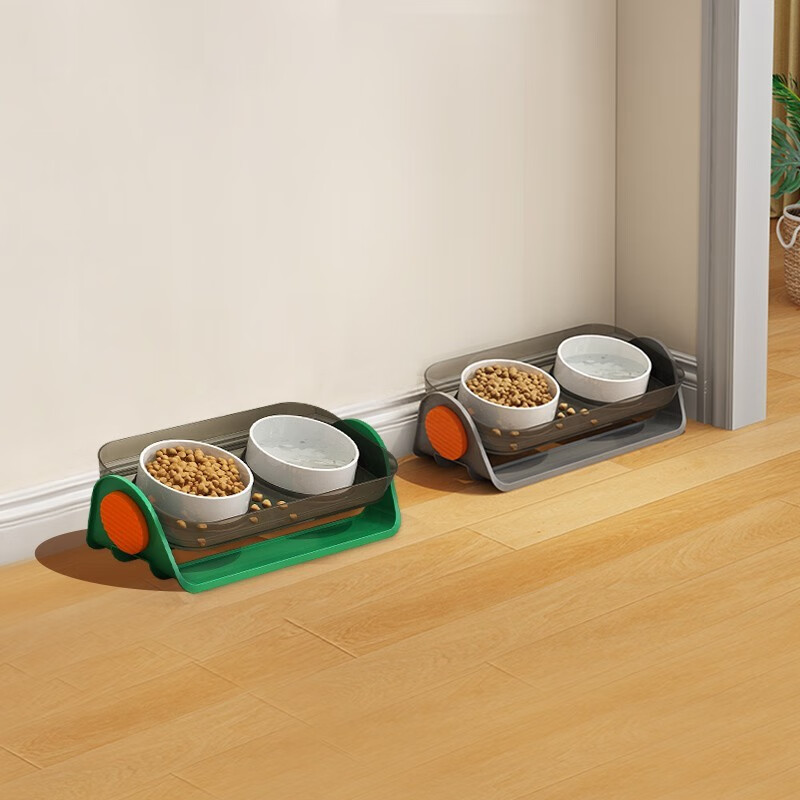 邦可臣 猫碗陶瓷双碗猫粮盆猫咪喝水狗食盆狗狗用品高脚加菲猫专用扁脸碗 北欧绿一套 星空灰一套【适合多猫家庭】 双猫碗(无惧洒落漏食,倾斜保护颈椎)