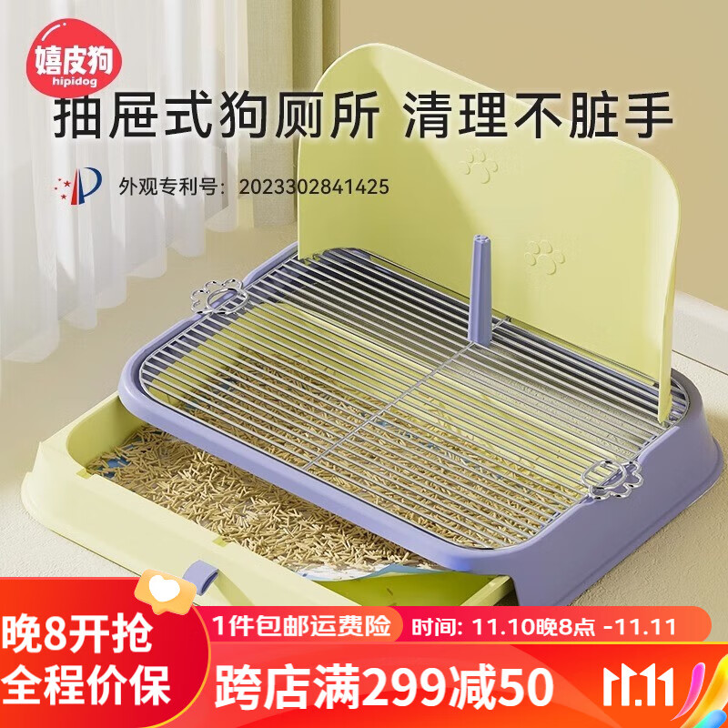 嬉皮狗(hipidog)狗狗厕所小型犬专用尿盆防踩屎便盆不锈钢小狗用大小便神器狗砂盆 蓝绿拼色【间距20mm】 背板 立柱