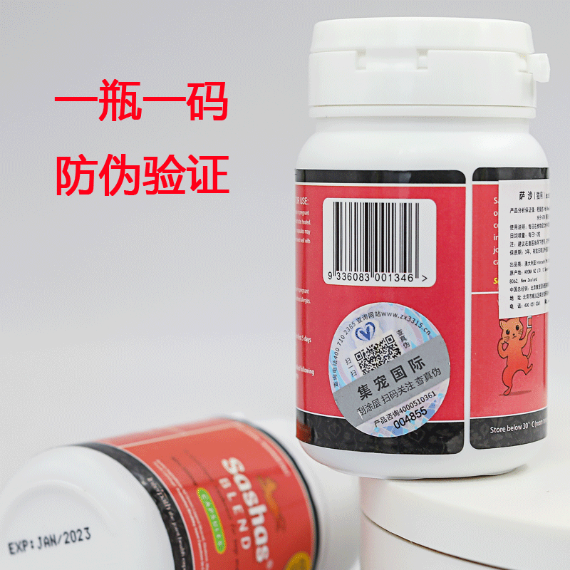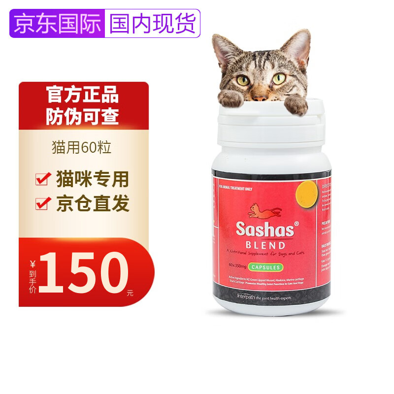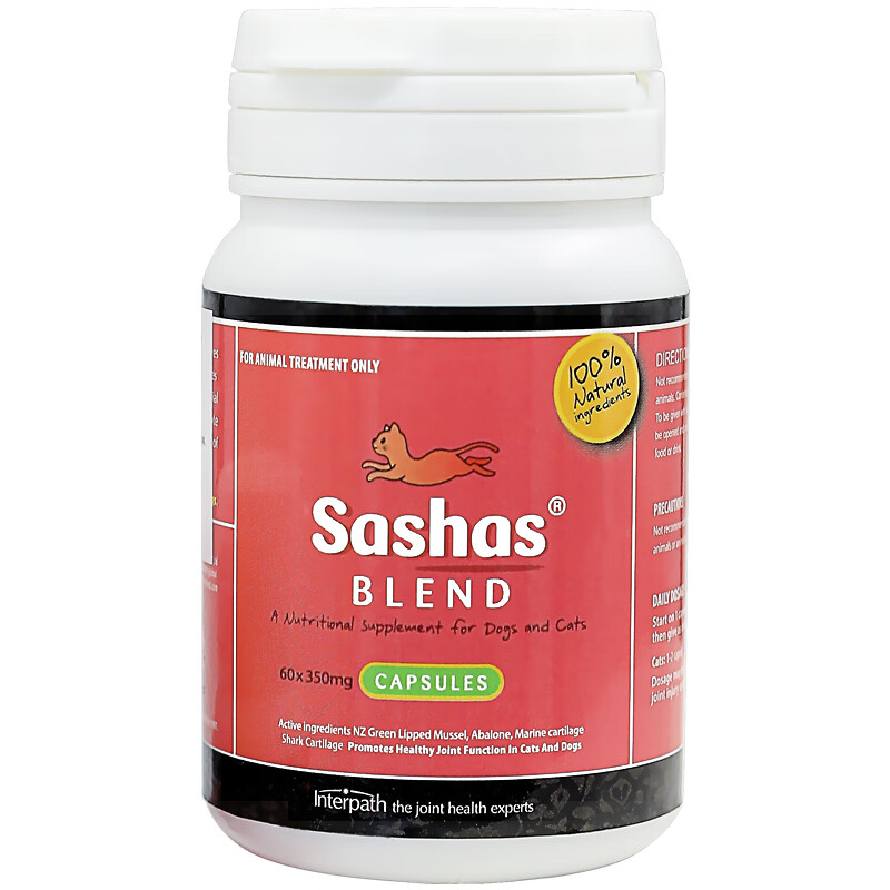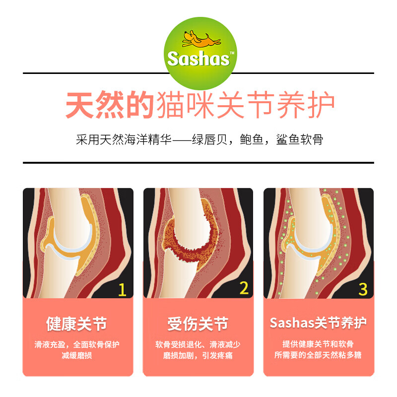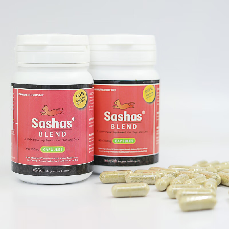 萨沙Sashas4CYTE速赛益柏力加强版宠物关节灵鲨鱼软骨素胶囊狗狗猫咪炎疼痛修复犬髌骨脱位 萨沙猫用60颗/瓶