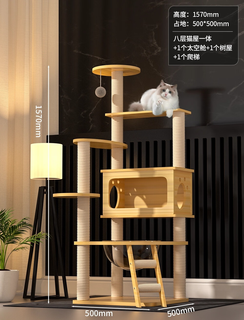 猫爬架猫窝猫树一体猫抓架子不占地太空舱通天柱实木猫跳台 【MamyPets 亲妈级养宠】