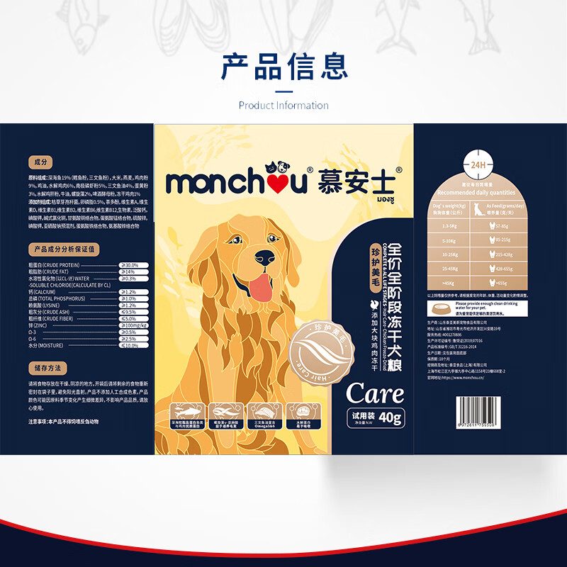 慕安士(monchou)泰国品牌 全价全阶段珍护美毛冻干狗粮犬粮试吃包40g
