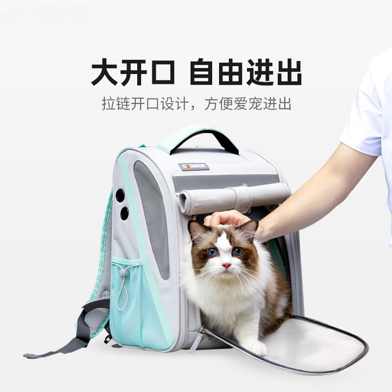 宠物外出猫包双肩大容量便携夏季透气宠物背包手提式航空箱PETDX 多功能背包-马卡龙绿(12斤以内)