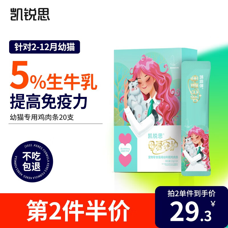 凯锐思 生牛乳鸡肉猫条猫咪幼猫猫条猫零食增肥发腮营养无诱食剂 【5%生牛乳】鸡肉猫条20支