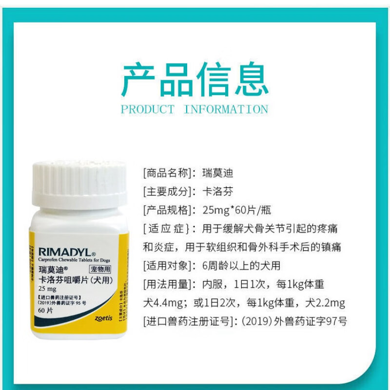 【顺丰空运】辉瑞瑞莫迪止疼药狗狗关节止疼消炎犬骨折术后瘤肿宠物止痛辉瑞 瑞莫迪25mg 10粒(拆售)