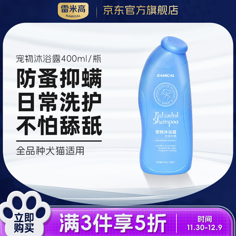 雷米高(RAMICAL)狗狗沐浴露比熊泰迪猫咪专用香波浴液用品宠物洗澡除臭止痒 洁毛滋润400ml