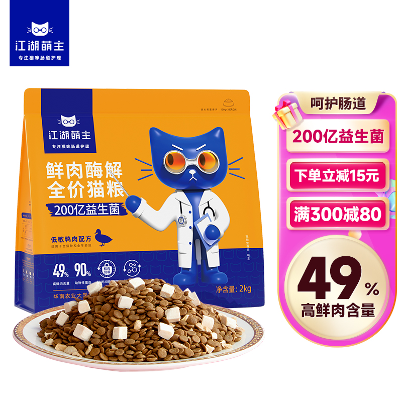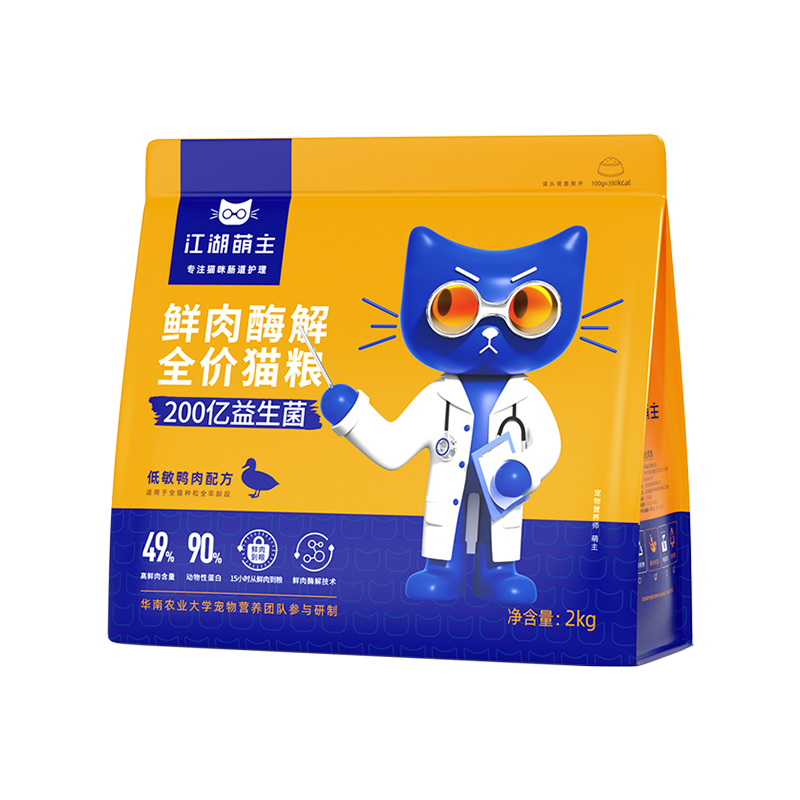 江湖萌主鲜肉酶解全价猫粮低敏鸭肉配方2kg成猫布偶英短无谷增肥发腮冻干天然粮