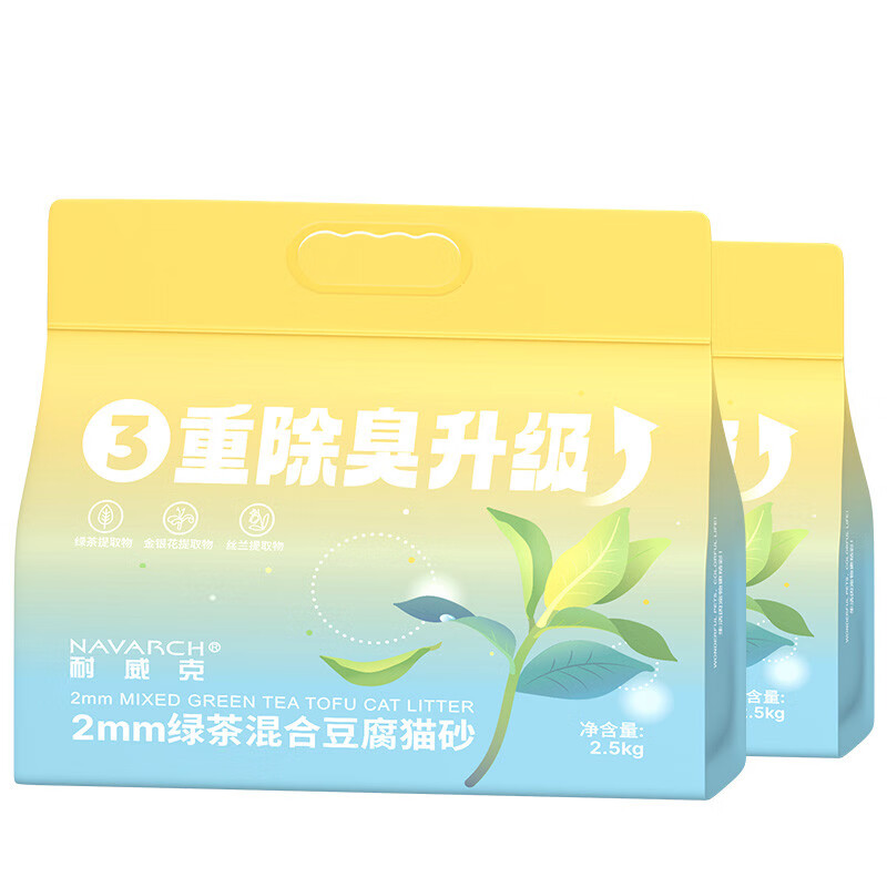 耐威克 绿茶豆腐膨润土混合猫砂 吸水结团2mm混合细砂2.5kg*2