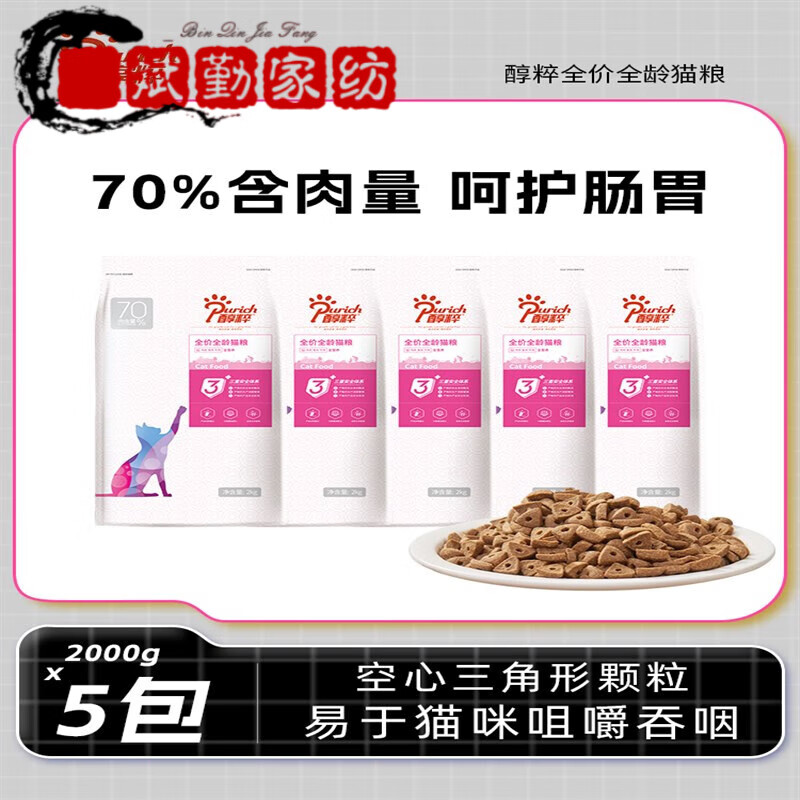 醇粹(Purich)猫粮天然室内成猫粮2kg5盒10kg20斤宠物猫主粮无谷全价猫干粮 红 *5包2月