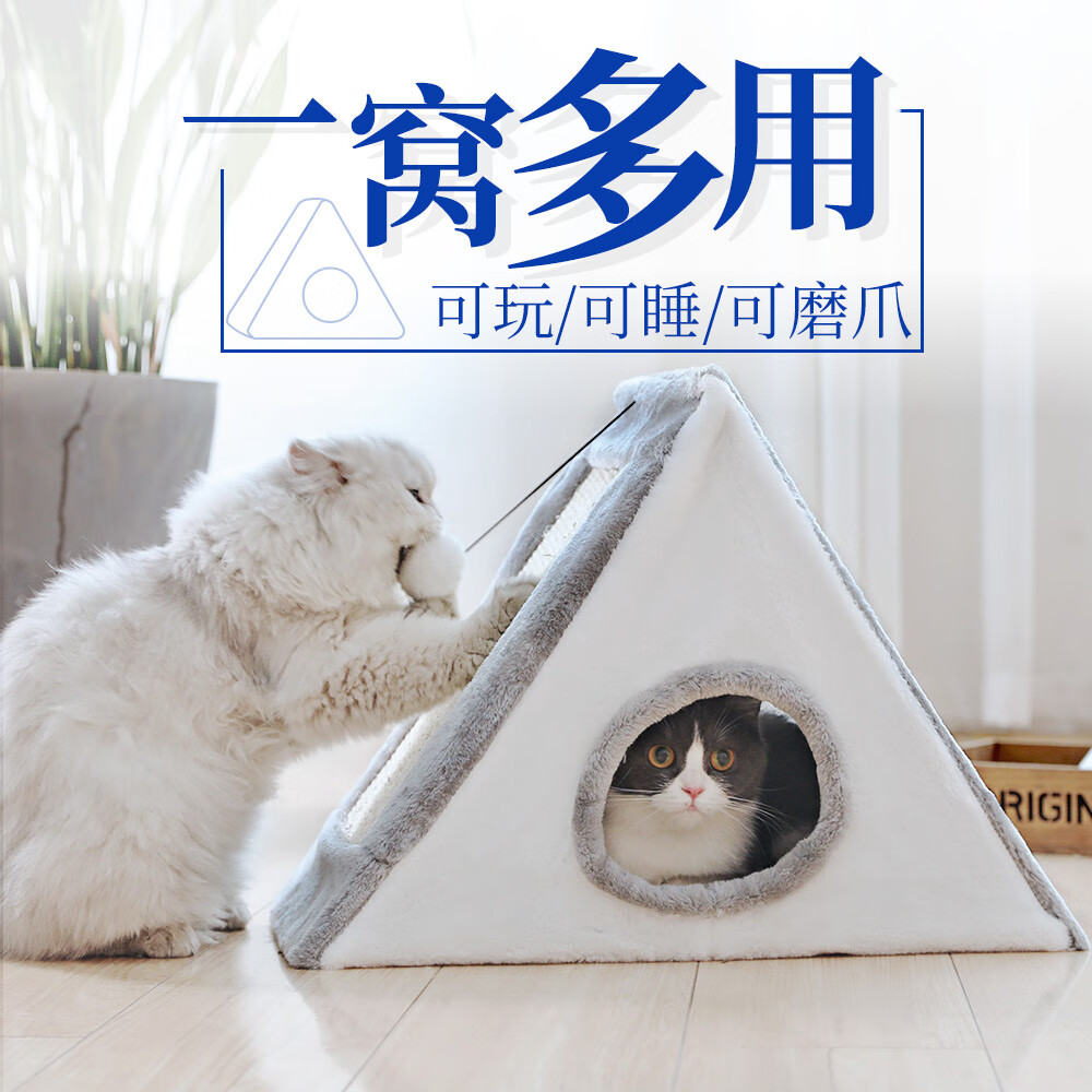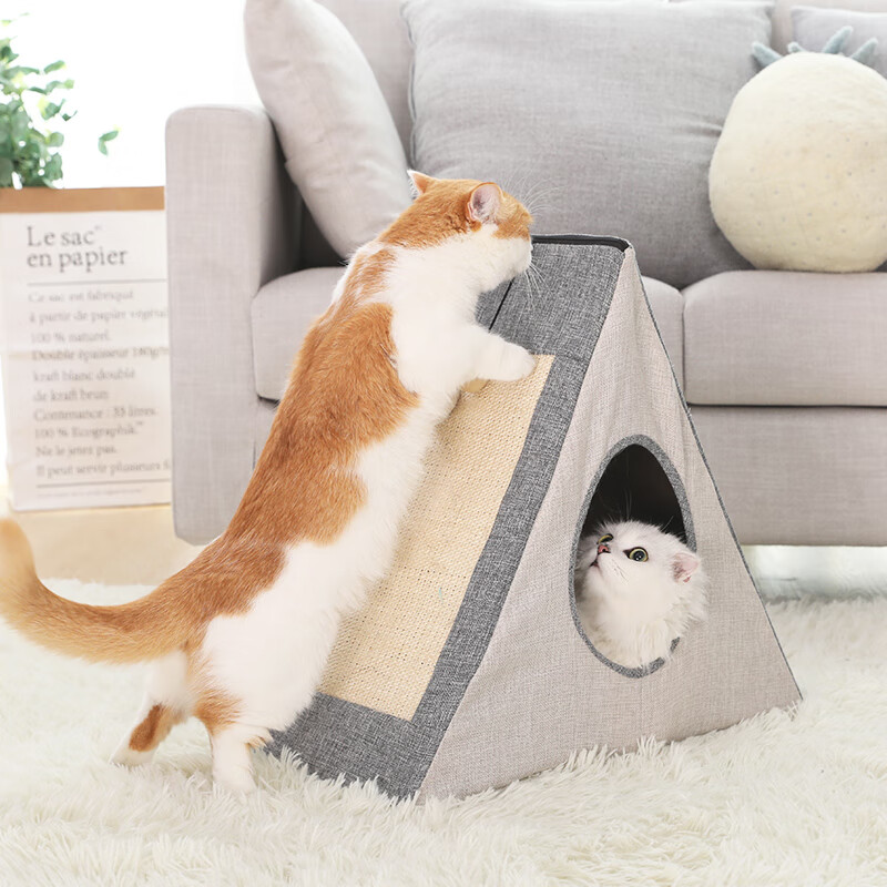猫爬架小型猫抓板带猫窝猫架一体小别墅带窝猫咪剑麻玩具猫树用品 灰色 白色 折叠小号