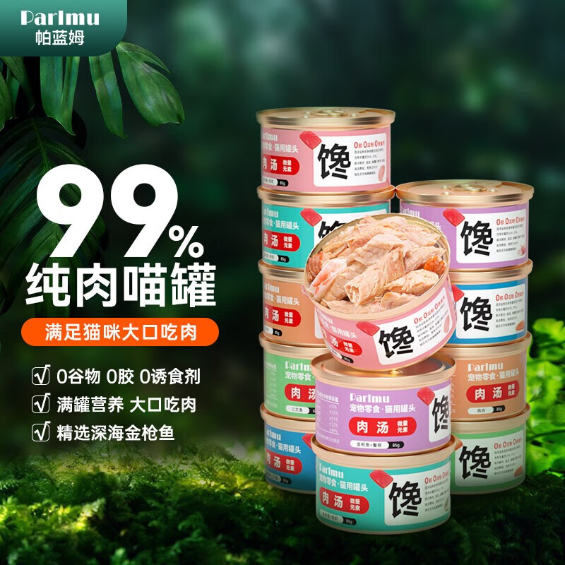 parlmu帕蓝姆猫罐头金枪鱼原料 成幼猫罐头纯白肉 85克*12罐 口味混合