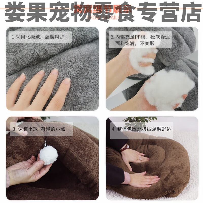喵仙儿多仓发货冬季保暖猫窝宠物猫睡袋猫咪窝垫子棉垫狗窝四季通用可水 咖啡色猫睡袋