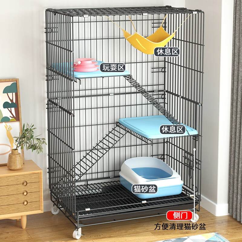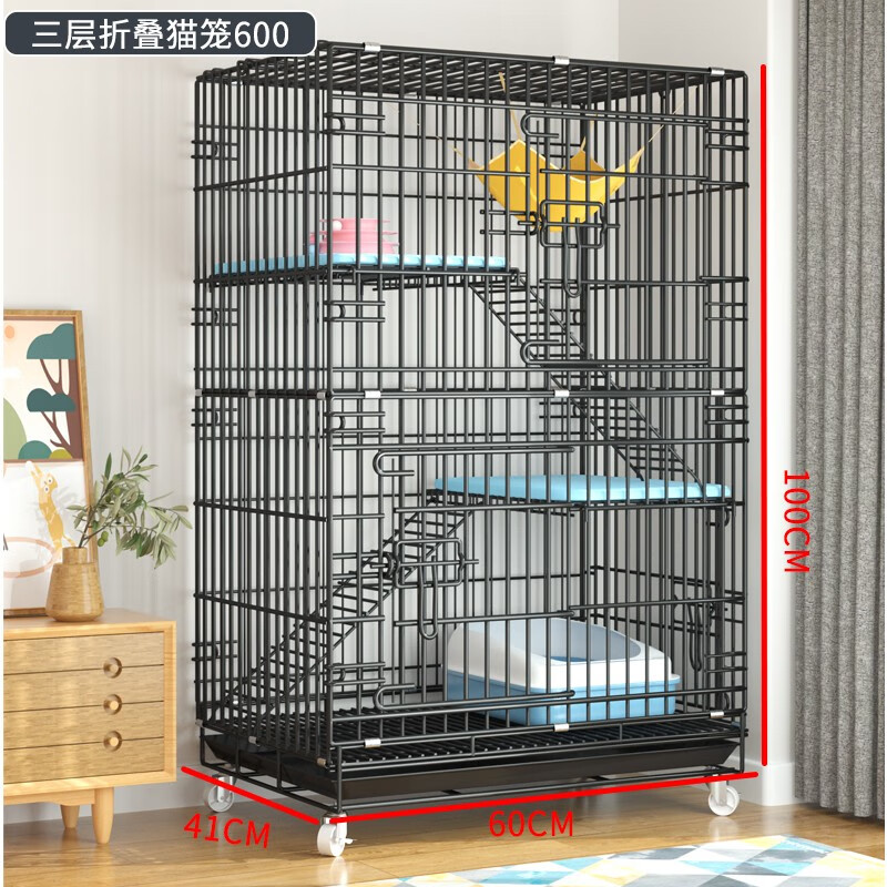 OIMG加粗加密 送货上楼 猫笼 加粗加密铁丝折叠猫笼子双层三层猫别墅 红色