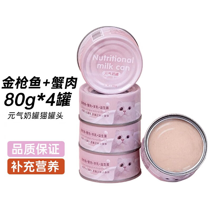 尾巴生活(FURRYTAIL)元气奶罐80g八罐益生菌羊奶幼猫营养奶糕猫罐头猫咪零食罐头 金枪鱼 蟹肉80g*4罐