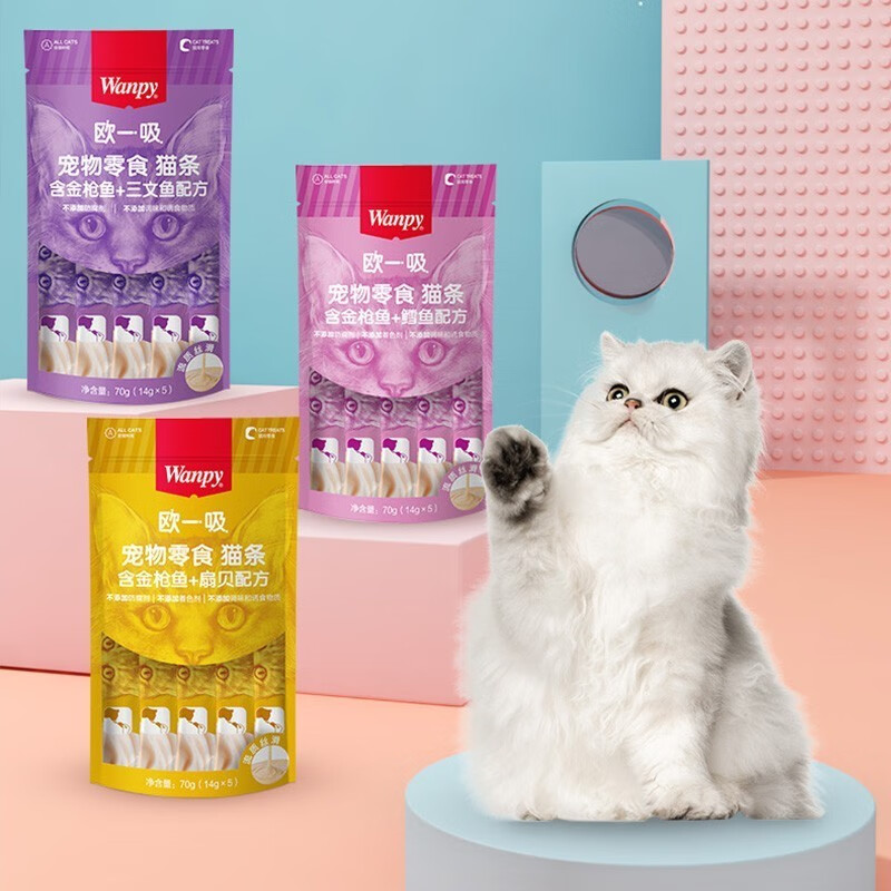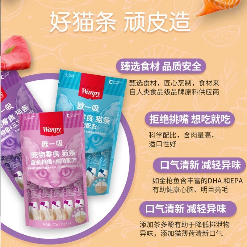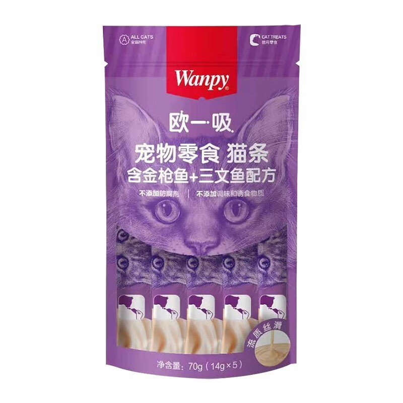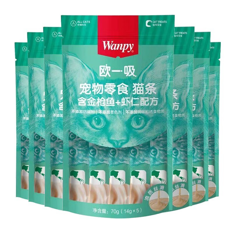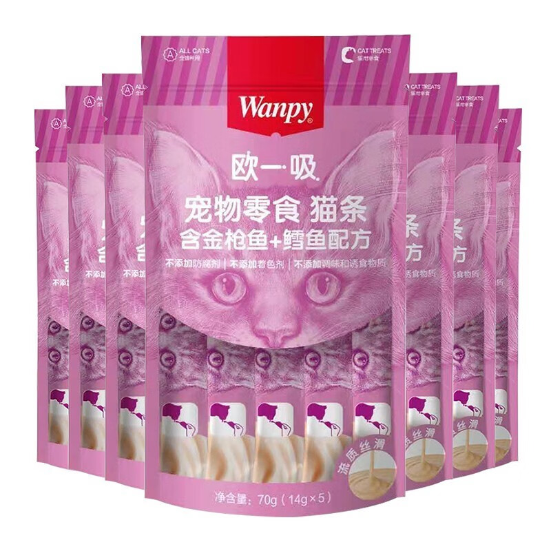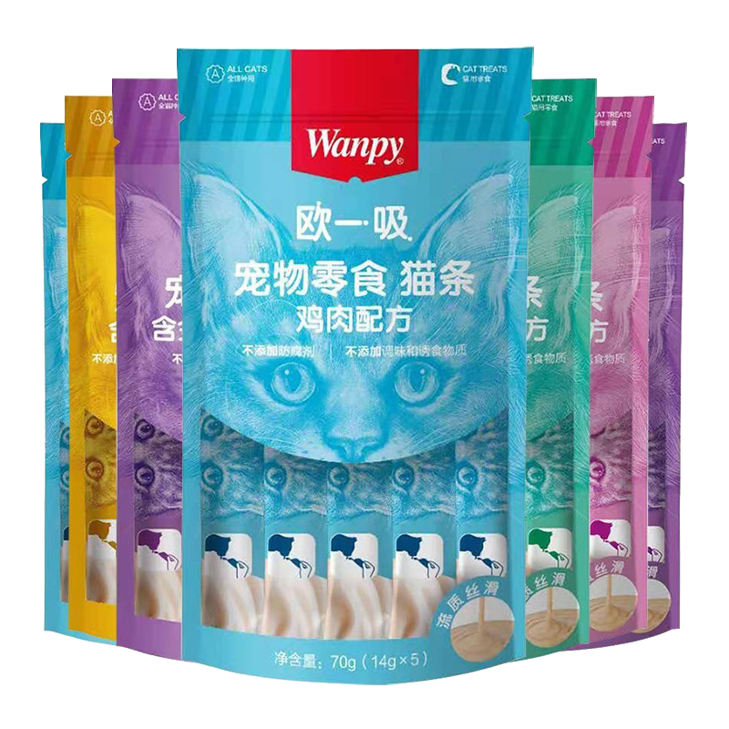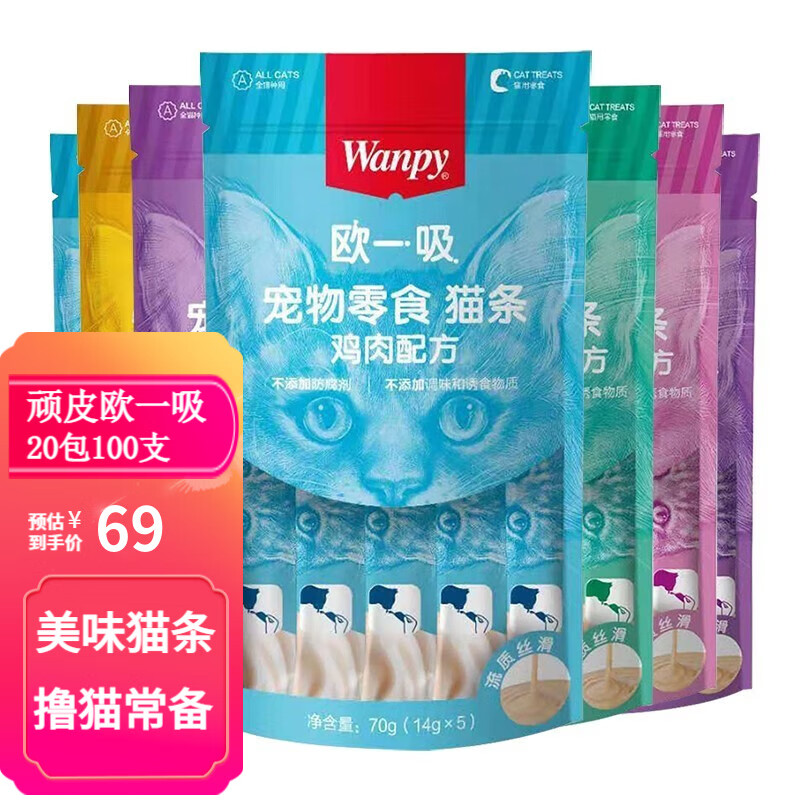 顽皮(Wanpy)欧一吸猫条100支20袋猫零食营养流质湿粮成幼猫宠物零食 混合口味100支20包