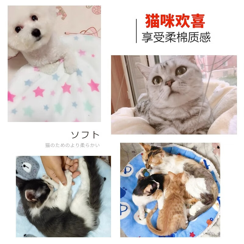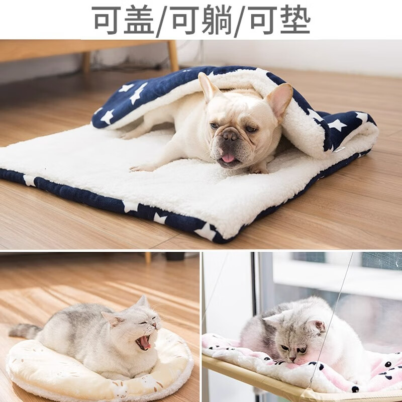 猫米宠物四季通用猫垫子猫窝猫咪毛毯睡觉棉毯子狗狗地垫睡垫猫咪用品 方形蓝熊头 S码(适合7斤内)