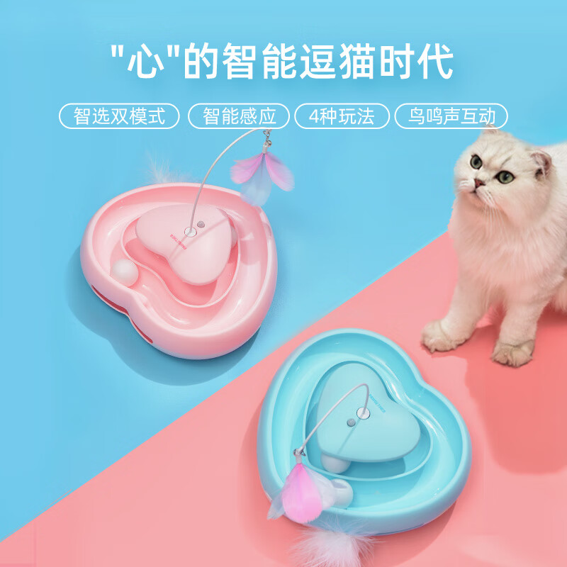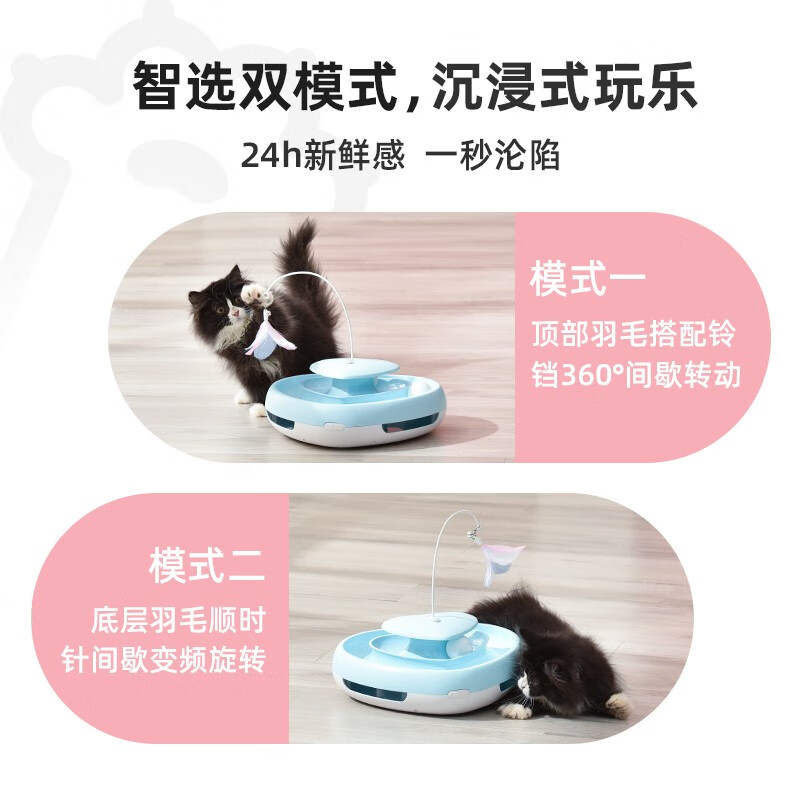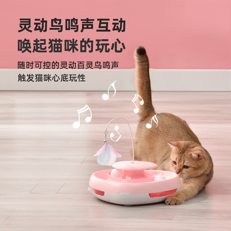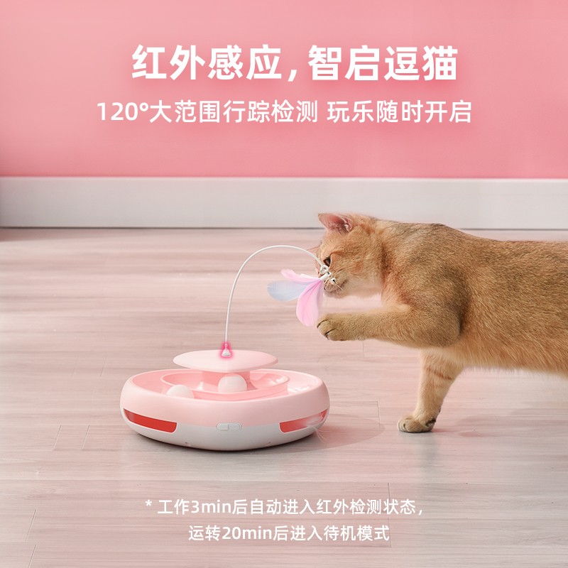 宠小到大智能猫玩具猫咪自嗨互动解闷神器自动电动羽毛逗猫棒猫玩具球转盘宠物用品 天使粉