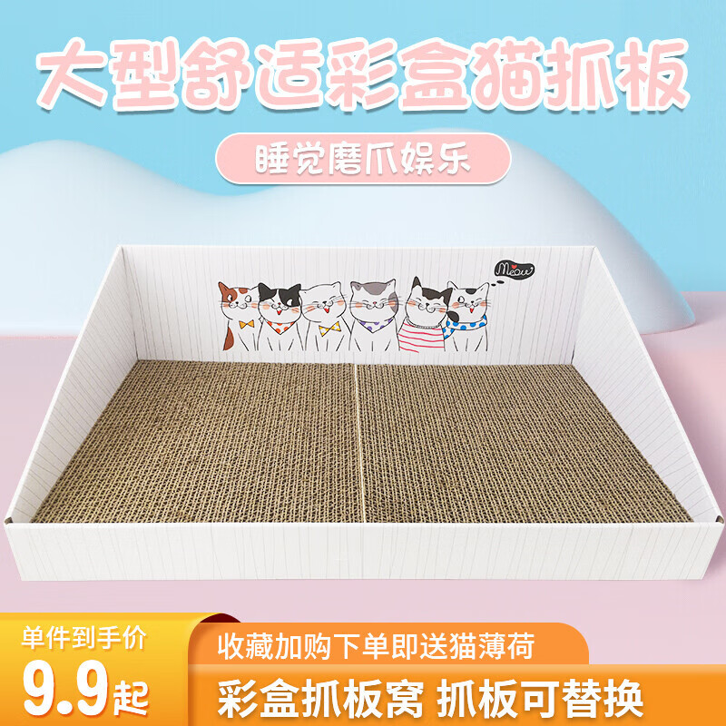 得酷猫抓板二合一磨爪器彩盒两块装猫爪板护沙发练爪器瓦楞纸挠抓窝猫玩具猫咪用品 绿色彩盒