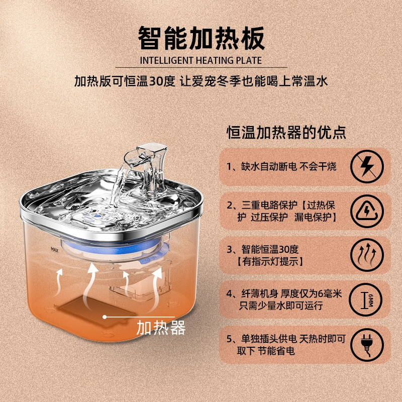 邦可臣猫咪饮水机恒温加热小猫水循环流动智能充电宠物饮水器猫自动活水 基础入门【无原装插头】见图二