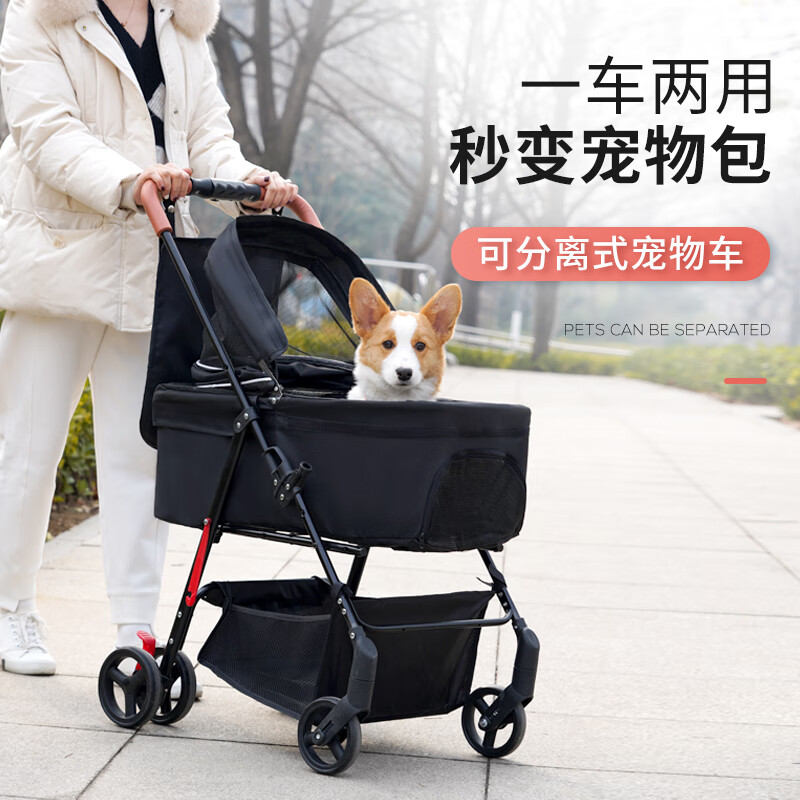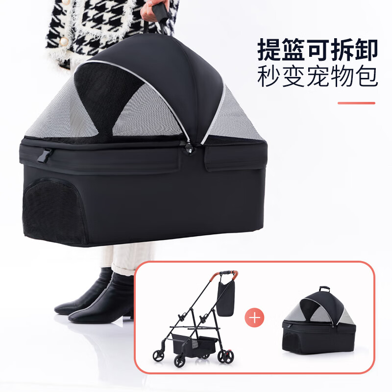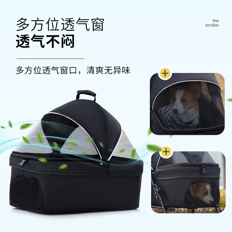 搭啵兔宠物外出小推车轻便可折叠拉小型犬狗狗溜猫咪手推车便携行李箱包 黑色经典款承重10KG内可折叠提