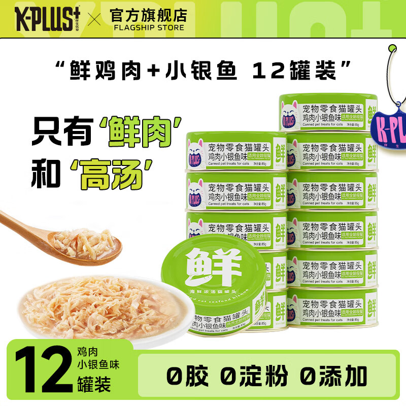 K-PLUS 猫罐头主食湿粮罐头猫咪零食 鲜肉浓汤补水鸡肉整箱 小银鱼 鸡肉味12罐