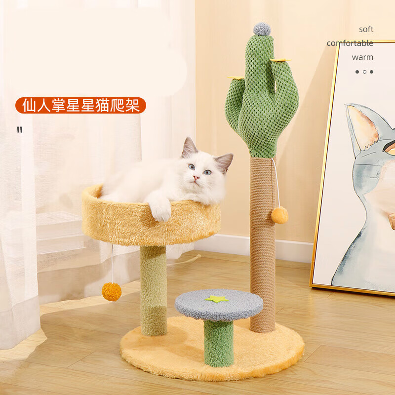 仙人掌猫爬架小型不占地猫架子猫窝猫树一体猫抓柱幼猫咪玩具用品 主图款带逗猫球(仙人掌双)